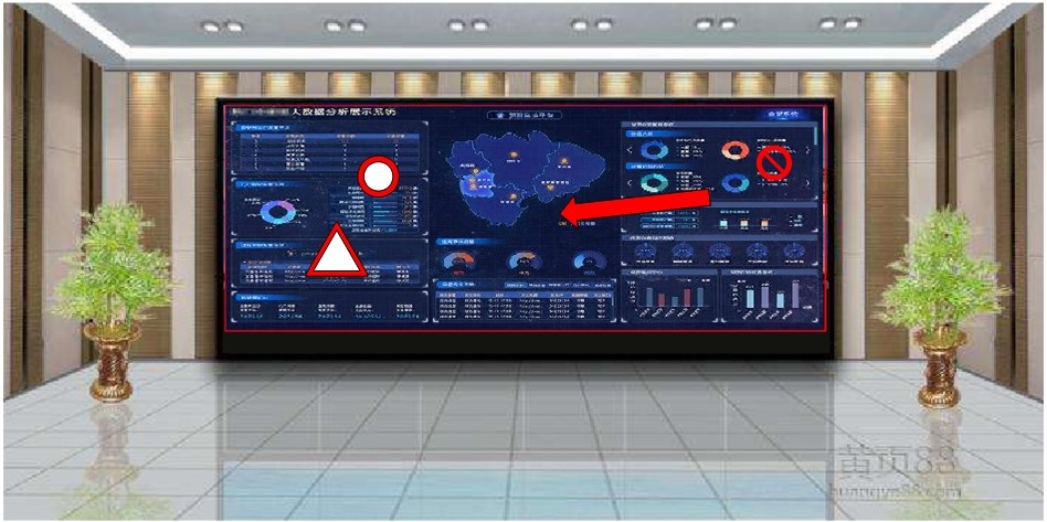 整屏显示:整个大屏可显示一路完整的视频图像,能够直接将业务电脑的高清数据进行整屏发布显示。